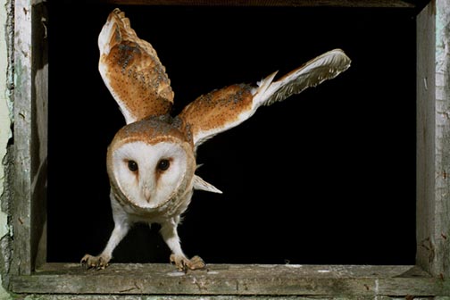 BP45 BARN OWL LEAVING BARN