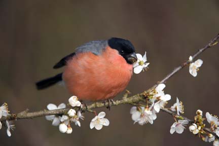 GB0051 BULLFINCH MALE EATING BLOSSOM