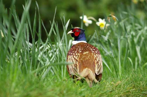GB0121 PHEASANT IN DAFFODILS