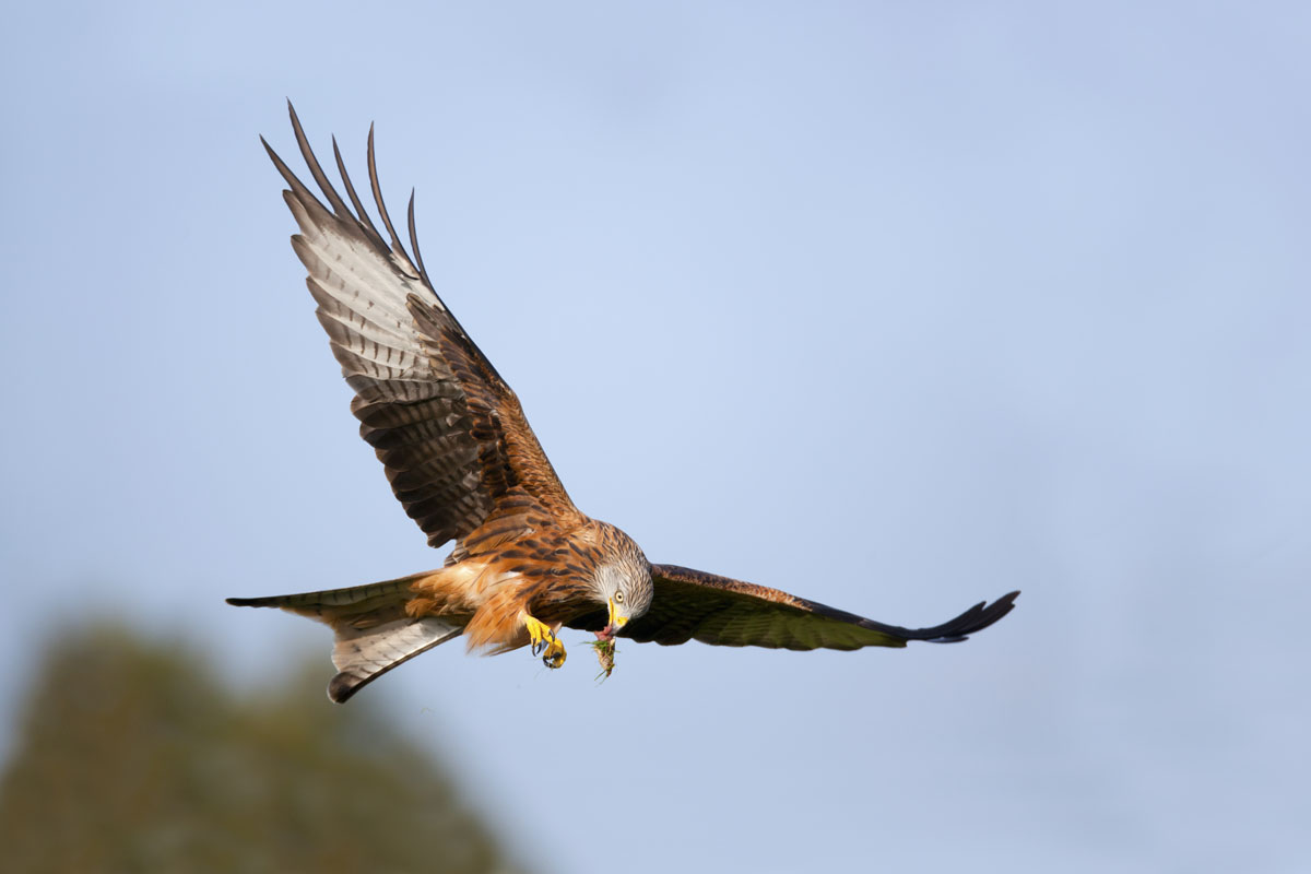 ED KITE IN FLIGHT WITH PREY