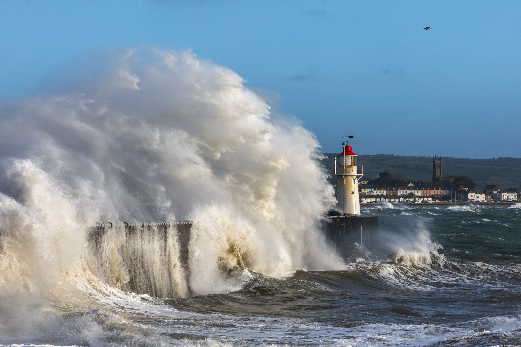 | The latest storm to hit Cornwall was named Ingrid, she hit the south coast hardest with strong south east winds. This made Newlyn Harbour an impressive place to visit with huge waves breaking over the pier and lighthouse. Here are two photos taken by David just after high tide on the morning of the 23rd of January. | |||