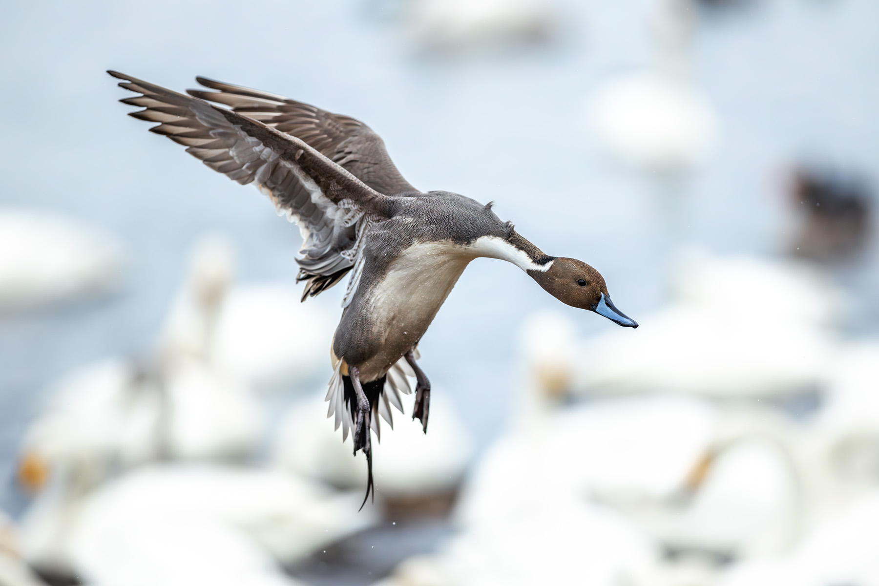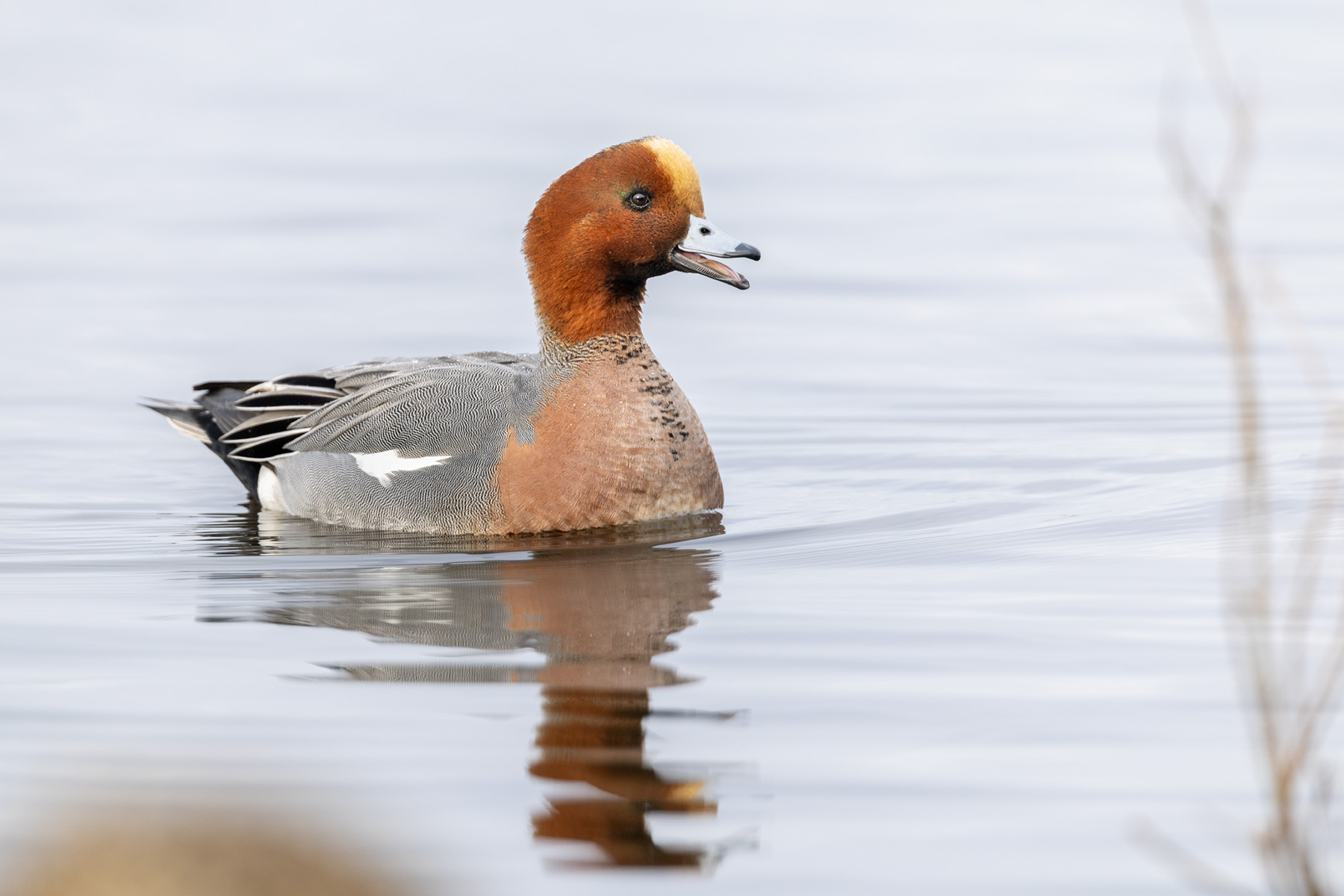 wigeon drake calling; ruff preening; pintail drake in flight; avocet;