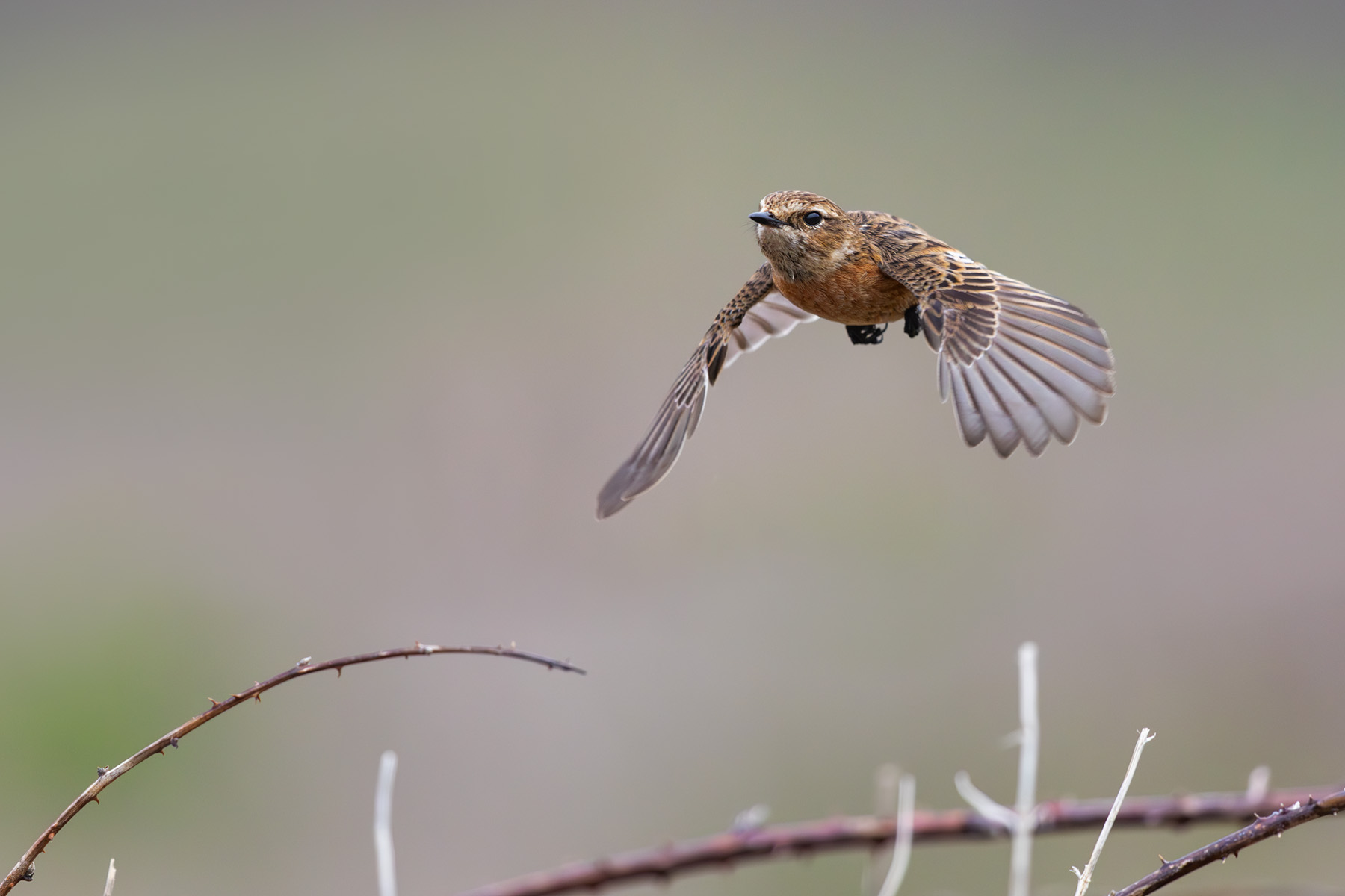 Pentire. At Trenance there were only a few waterbirds (most having left for the summer) including the drake tufted duck seen shaking its head below. A song thrush performed beautifully as it collected nesting ,material only a few yards from David. Nearby a group of snakeshead fritillaries made a great subject. At West Pentire David concentrated on fulmars and stonechats in flight. Both really enjoyable subjects which tested David's reactions and the 'procapture' facility on the Canon R5 Mark II. Notably, all these photos were taken with just one lens: the 500mm f4. |