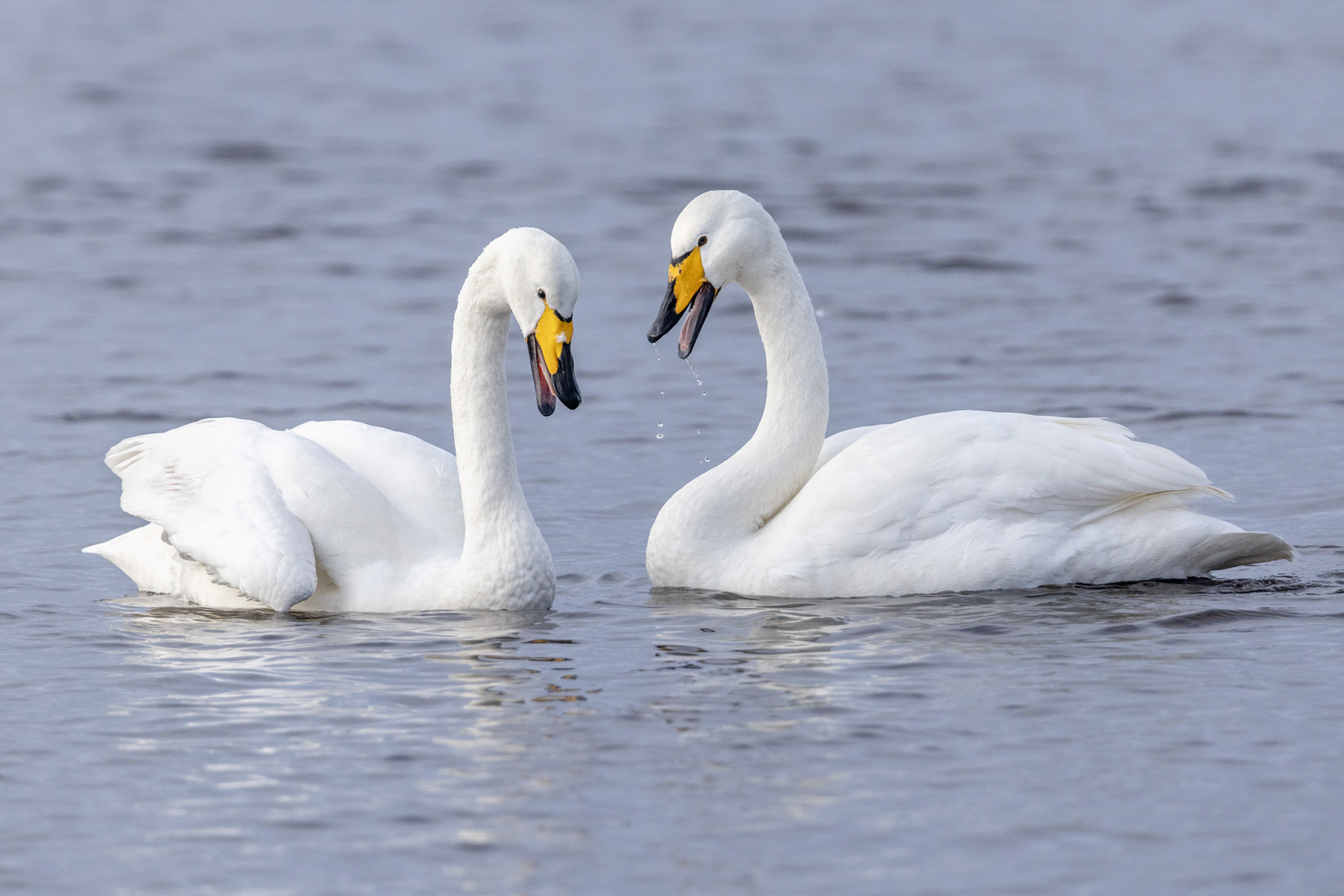 Bewick's swan bathing; whooper swans displaying. David would like to point out that the goldeneyes were amongst the clipped birds at Slimbridge and both the red-breasted merganser and avocet were in the aviary at Slimbridge. Having said that both locations offered fantastic opportunities for bird photography of both the captive and wild birds. Martin Mere was particularly good for birds in flight. |