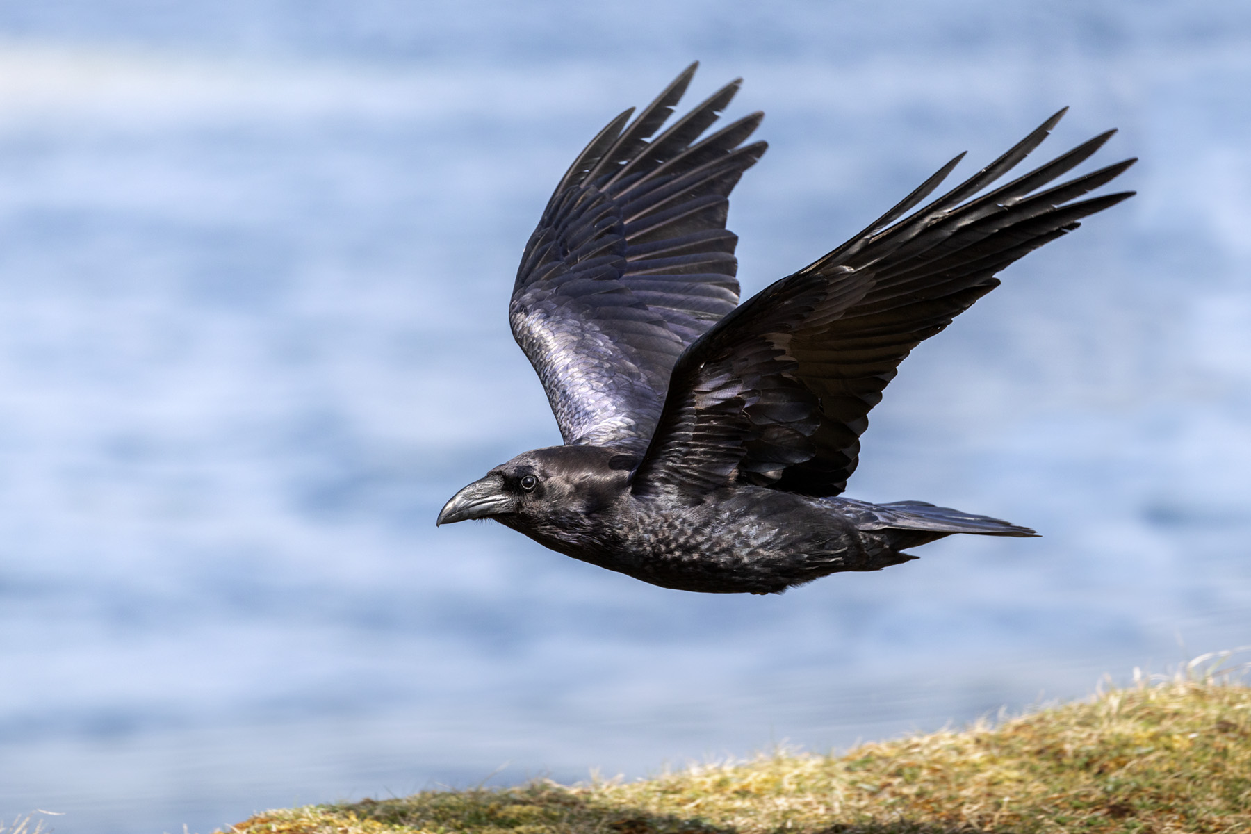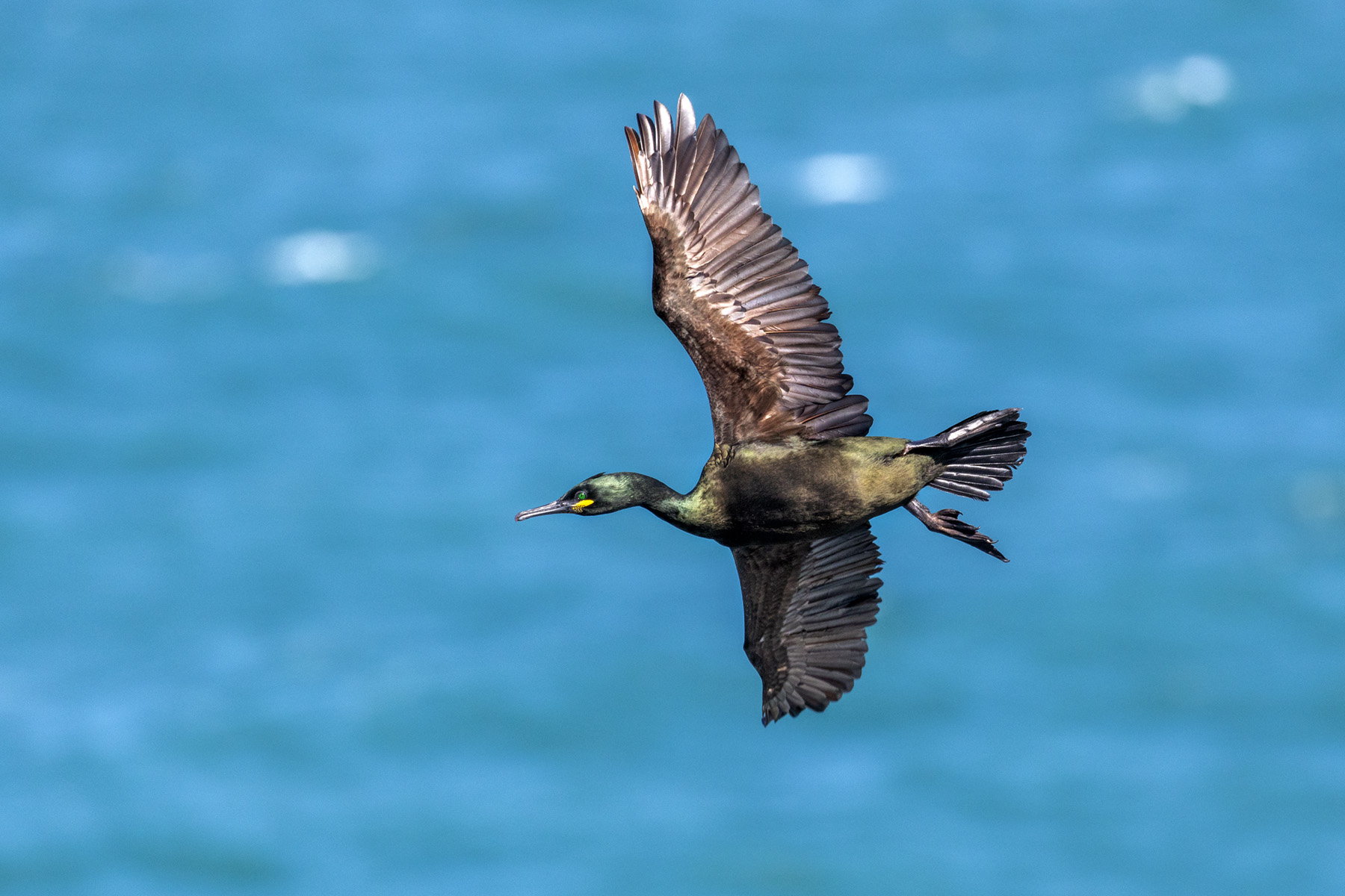 | David had a day out with friends Keith and Alan. They wanted help with optimising their camera settings before venturing to the Isle of Mull to photograph otters and sea eagles. So David took them to Godrevy to have a play with their cameras. David's photographs here show a raven in flight (right); a house sparrow cleaning up after lunch; and a variety of 'shag in flight' photos including one carrying nesting material. |