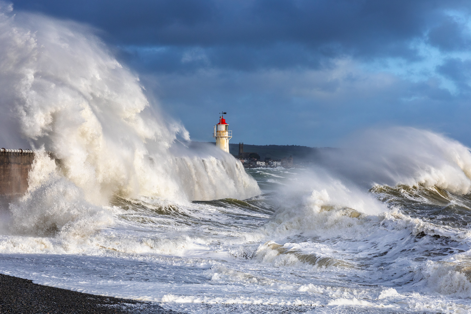 | The latest storm to hit Cornwall was named Ingrid, she hit the south coast hardest with strong south east winds. This made Newlyn Harbour an impressive place to visit with huge waves breaking over the pier and lighthouse. Here are two photos taken by David just after high tide on the morning of the 23rd of January. | |||