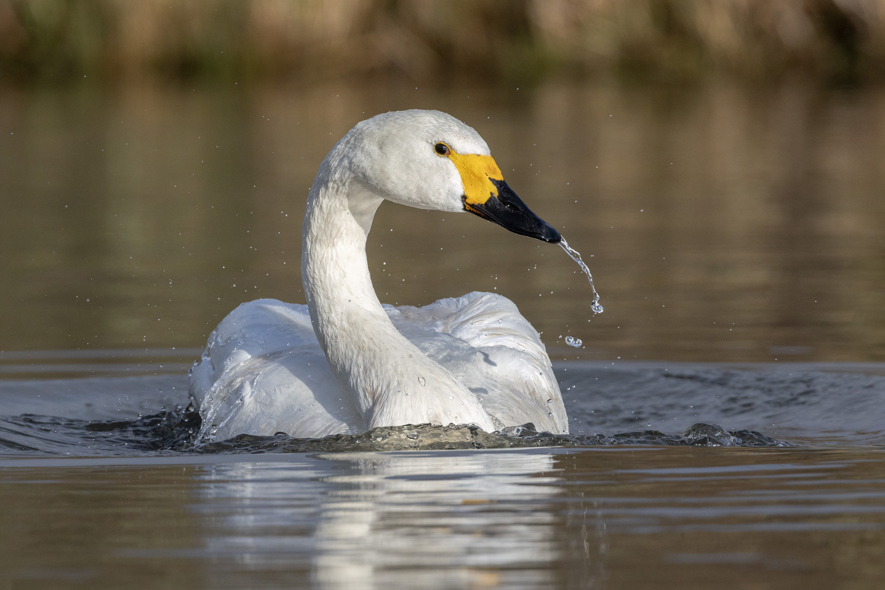 Bewick's swan bathing; whooper swans displaying. David would like to point out that the goldeneyes were amongst the clipped birds at Slimbridge and both the red-breasted merganser and avocet were in the aviary at Slimbridge. Having said that both locations offered fantastic opportunities for bird photography of both the captive and wild birds. Martin Mere was particularly good for birds in flight. |